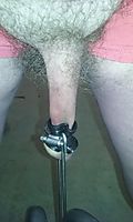Spiderwebb stretching his big balls. With oxballs nailed ball stretcher.