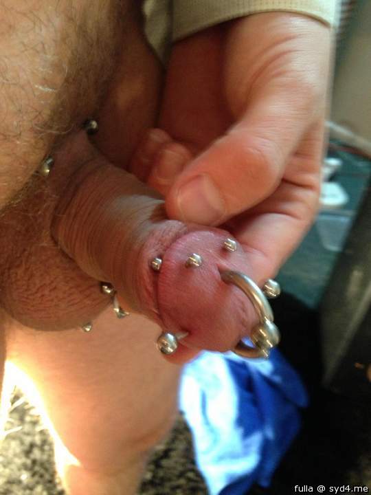 My small shriveled cock and balls showing off piercing