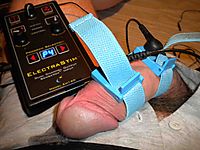 Oozing pre-cum through e-stim.