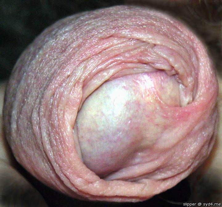 Foreskin rolled back over cockring