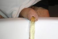 Watch pissing with my soft uncut foreskin dick
