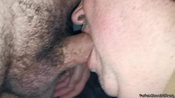 Me sucking my mate's cock. He came in my mouth and I swallowed his load.