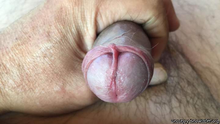 My uncircumcised penis with tender foreskin and damage frenulum close up