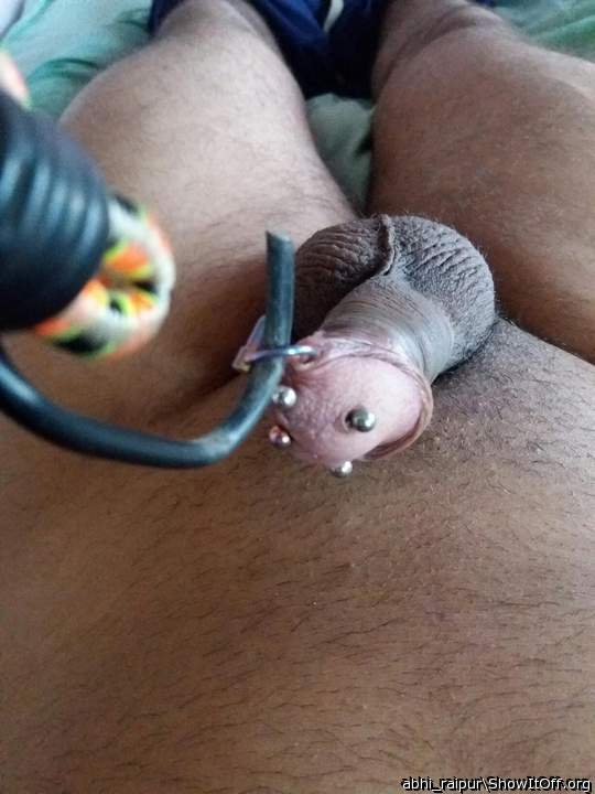 My frenulum piercing on my uncut foreskin intact dick