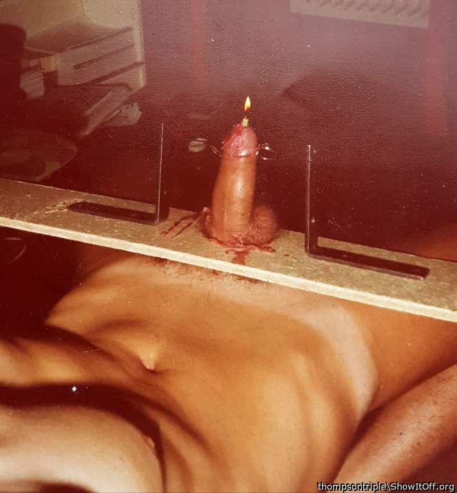 Penis fixed with candle in- watched completetely burning down