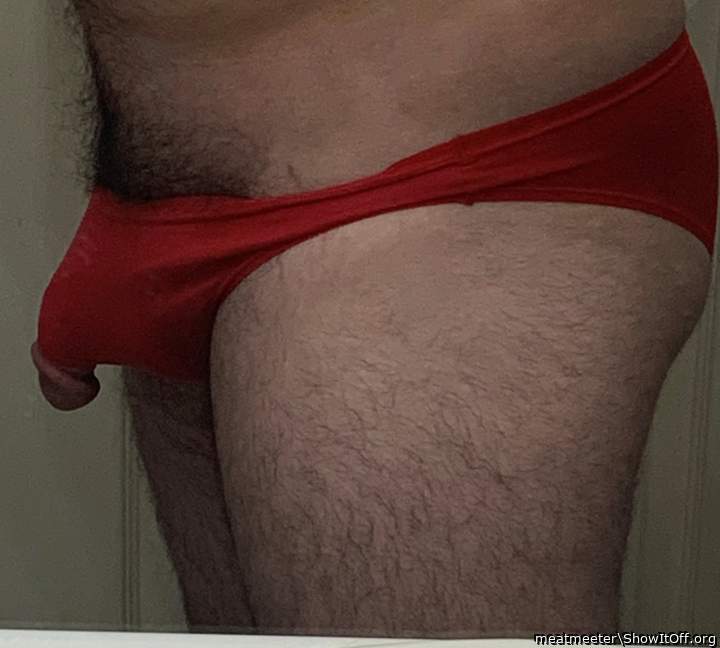 Cock hiding in Red Panties !