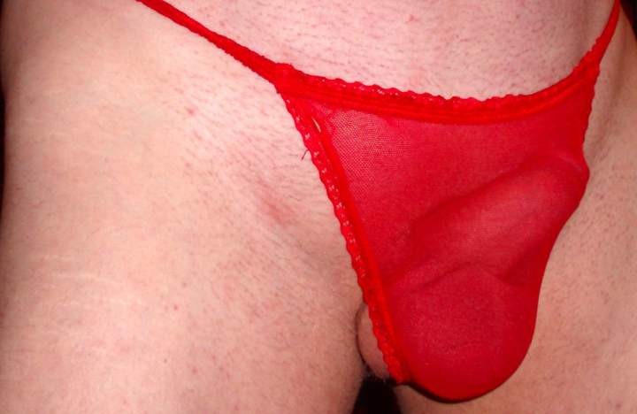 My cock in red and black sexy thong