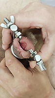 Squeezing out some pr-cum.