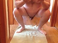 Fatty shows his shaved dick and big belly