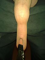 Closeup through hanging foreskin.