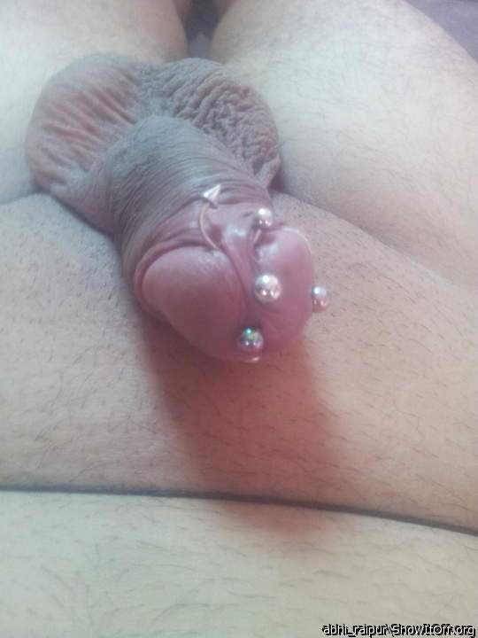 My frenulum piercing on my uncut foreskin intact dick