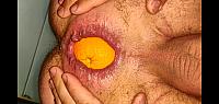 Pushing out an orange