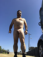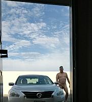 Nude in a public parking lot