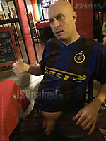 Showing my cock at a public sidewalk bistro