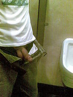 Pissing in a public restroom