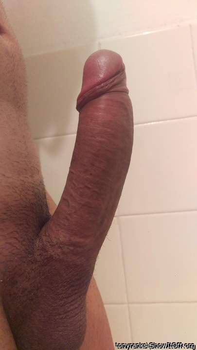 Erect and with my foreskin pulled back
