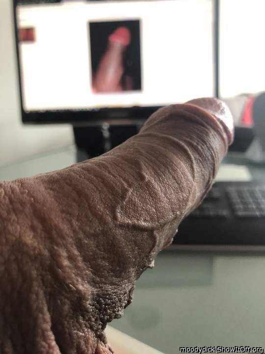 Erect penis with nude glans and retracted foreskin