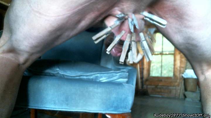 Clothes pegs on my nuts