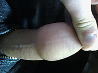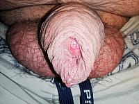 Closeup through hanging foreskin.