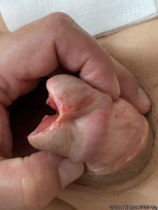 After snipping fren from glans to clear PA hole
