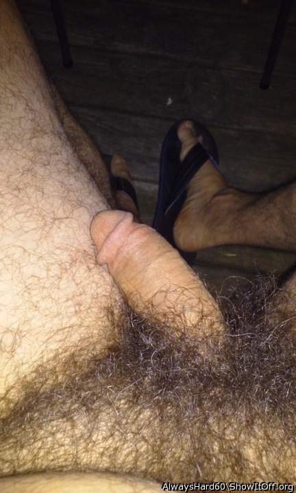 Outside On The Porch, Naked Except For Flip flops Stroking My Big Har Hairy Cock