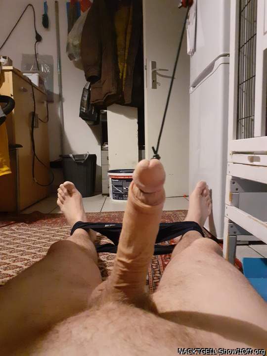 Nackt im Liegen ! Penis an der Schnur !