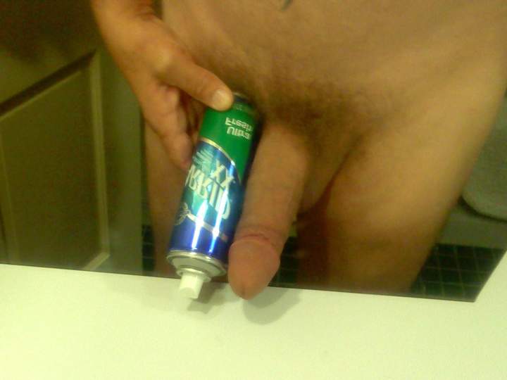 Can of shaving cream. Wonder where it's going?