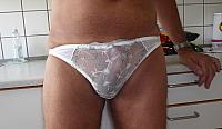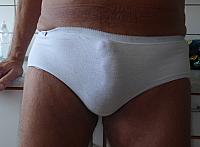 Cock bulge in white panties