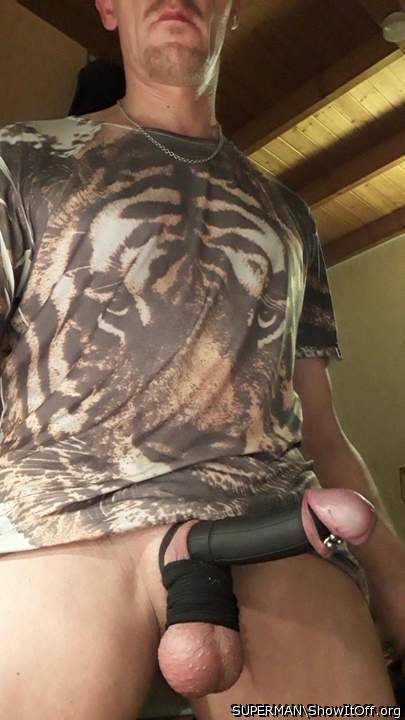 My bondaged pierced hard dick