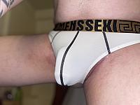 Stuffing my fat limp cock into an xl thong