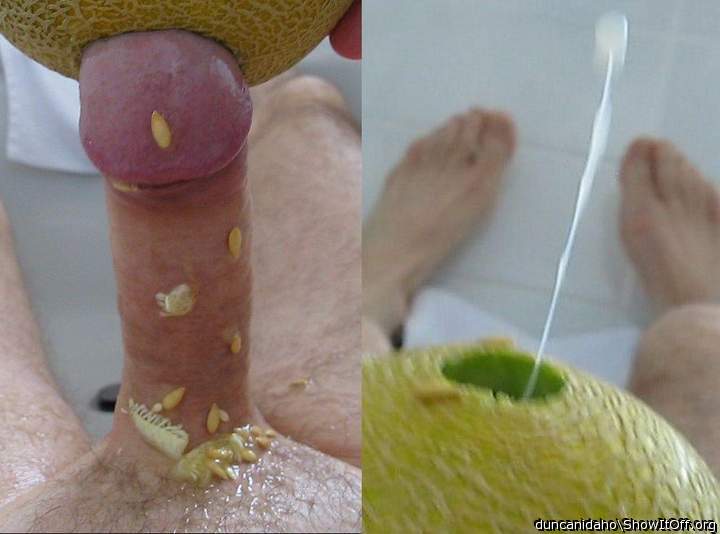 skwirting through a hole in a galia melon