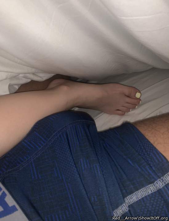 Her feet with my bulge