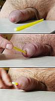 Erect penis with nude glans and retracted foreskin