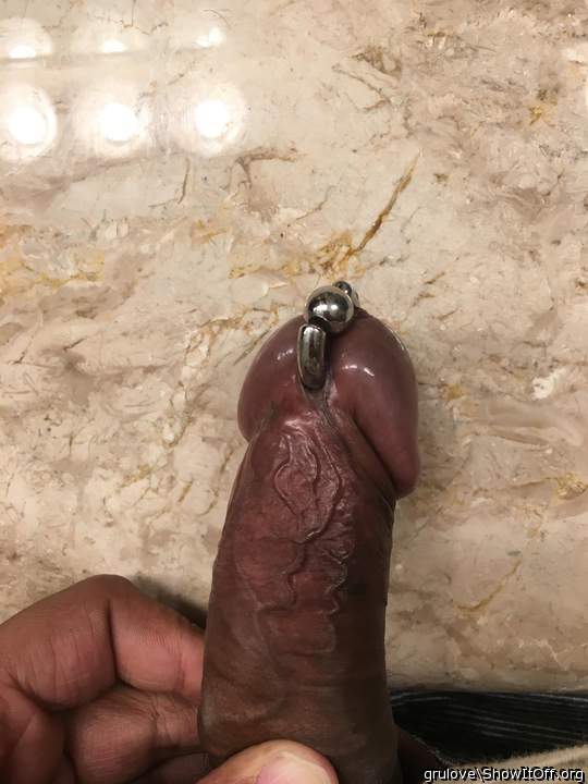 My frenulum piercing on my uncut foreskin intact dick