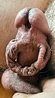 My testicles and wonderful foreskin, close-up, liked the fly!