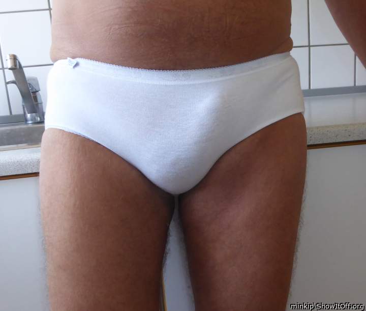 Cock bulge in white panties