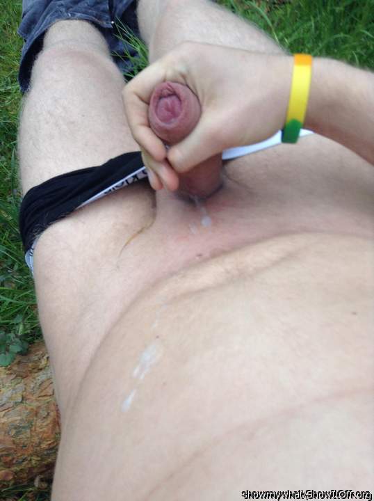 Leaking cum in the woods.