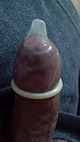 condom stretched over my rooter girth