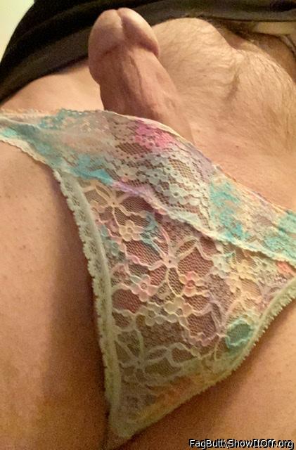Love his dick and balls in lace panties
