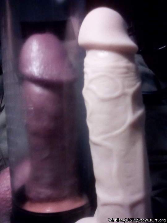 Comparing my new dildo to my pumped cock