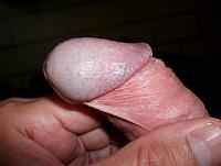 Glans sideview with corona, frenulum and retracted foreskin