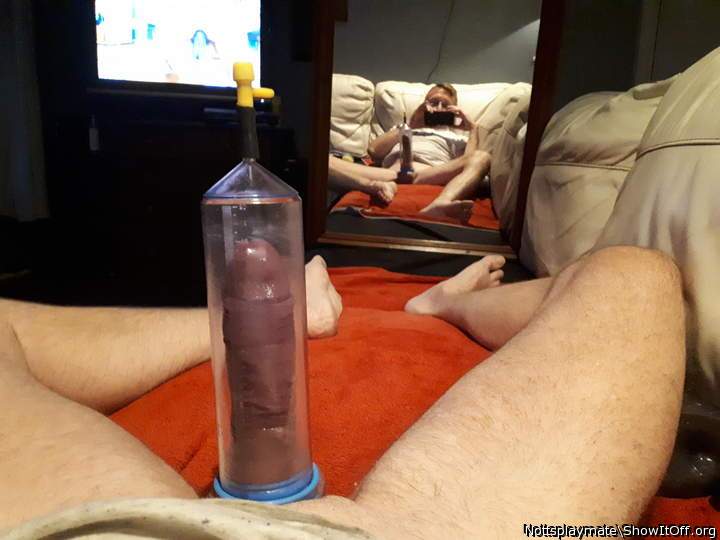Pumping my cock. I filled up the whole tube 😊