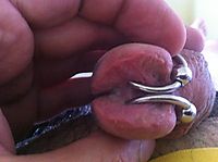 Penis with frenulektomy and 3 Goldrings