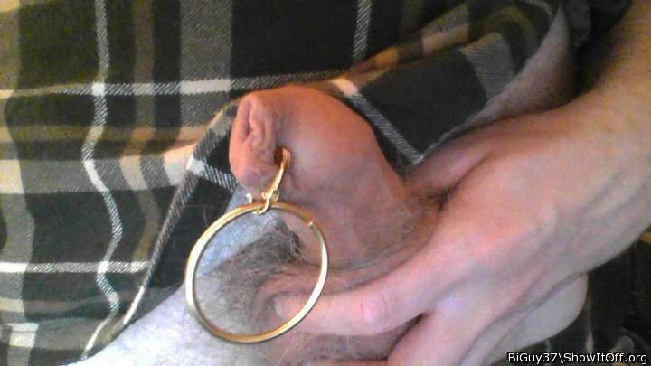 My small shriveled cock and balls showing off piercing