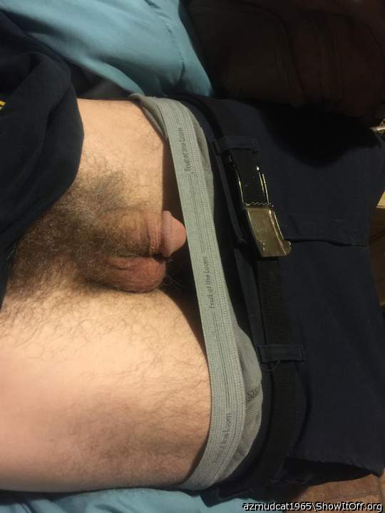 Wearing my green underwear with the morning wood
