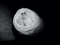 Uncut cock with foreskin pulled back