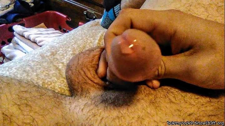 Precum dripping down balls