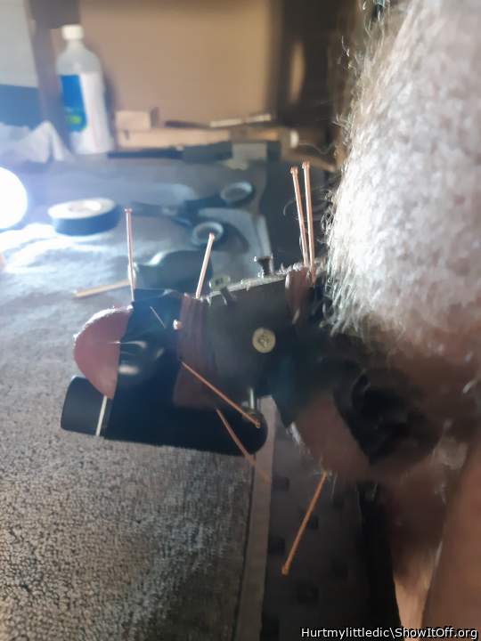 Clamps biting for a slow torture (head of the cock pain and more pain)