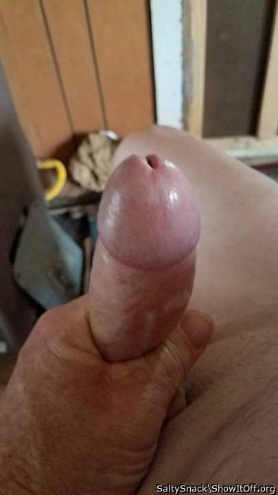 Post ejaculate - just a drop of cum on my foreskin