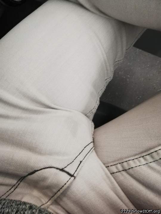 My bulge with a precum on the bus